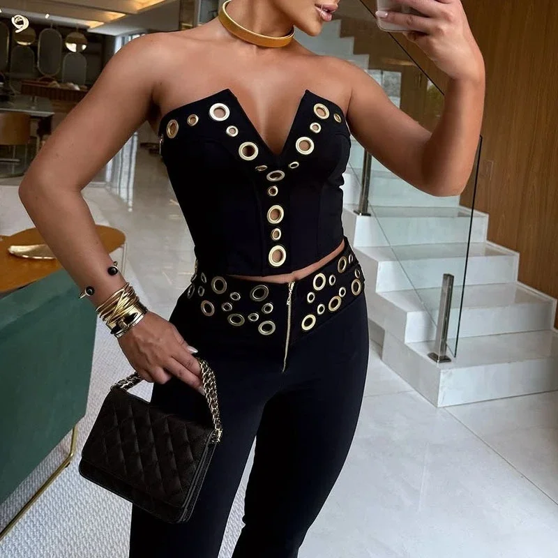 Jasmine Metal Ring Strapless Crop Top Pant Set